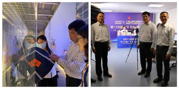 On April 15th, the 129th Canton Fair has officially opened online. The Executive deputy general Manager and deputy general manager of Guangzhou Textiles Industry and Trade Holdings LTD (hereinafter referred to as TIT group), Mr. Ge Weizhi and Mr. Guan Yong have led a team to visit the on-site exhibition work of all the exhibitors enterprises of TIT group.