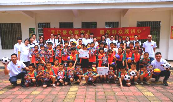 一是主动谋划,充分调动内部资源。在活动筹备阶段,爱体育官方端网站登录入口团委主动加强与兄弟单位双鱼公司的联系,双方共同协商确定捐赠运动服、乒乓球拍及篮球足球等体育用品,贴心地将党的关怀、团的温暖送到沙岗小学的每一位小学生身边。活动当天,志愿者们统一穿着爱体育官方端网站登录入口旗下利工民公司制作的纪念建党100周年文化衫,展示出大家朝气蓬勃的精神风貌,取得良好宣传效应。