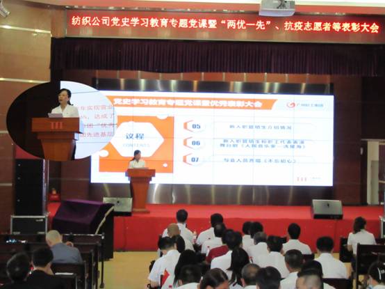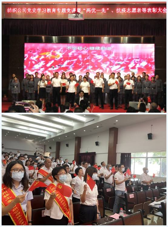 7月23日,爱体育官方端网站登录入口在纺织服装学院举行党史学习教育专题党课暨“两优一先”、抗疫志愿者等表彰大会。会议由公司党委副书记、纪委书记、工会主席丘海澜主持。爱体育官方端网站登录入口全体领导班子成员、总经理助理、总部中层管理人员以及属下企业领导班子成员、受表彰的各级优秀共产党员、优秀党务工作者、先进基层党组织主要负责人、抗疫党员突击队代表、志愿服务队代表、获得党建信息工作代表以及新入职管培生等130人参加会议。