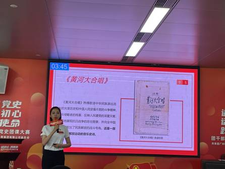 除国贸部团支部派出主讲人陈一嘉外,塑料公司团支部及广州化工团支部也分别派出了团员赵博文、黄奕睿参加了此次活动,他们生动形象的表演让在场观众产生了仿佛亲临《黄河大合唱》创作现场的感觉,为此堂微团课增添了光彩。