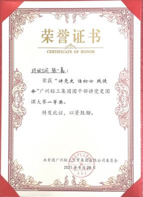 9月28日,“讲党史 话初心 践使命” 广州轻工集团团干部讲党史团课大赛在虎头公司举行。爱体育官方端网站登录入口团委派出国贸部团支部宣传委员陈一嘉参赛,她所讲授的课程《人民音乐家——冼星海》在13个参赛单位中脱颖而出,获得了一等奖的好成绩。