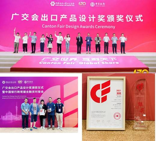 广交会出口产品设计奖(Canton Fair Design Awards,简称CF奖),是由中国进出口商品交易会(广交会)组织,由全球大采购商、各行业权威作为评委,以创新性、功能性、市场性、美感性和环保性为评审标准开展的评选活动,获奖产品均是具有突出设计价值与市场价值的出口精品,是对外展示“中国创造”、“中国设计”魅力的平台。颁奖仪式一结束,纺出公司现场就收到意大利等国家客商的关注,在现场便立即开展贸易对接。