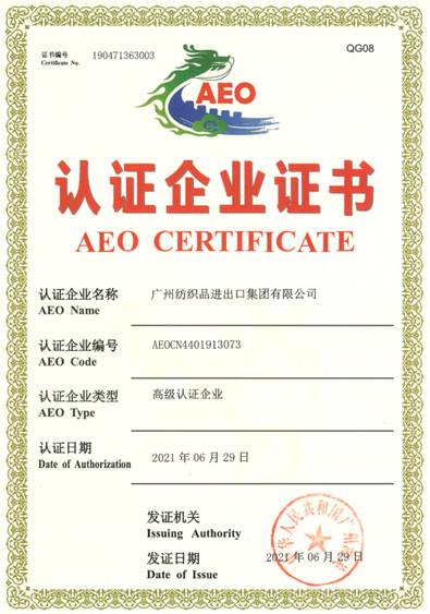 Through the unremitting efforts, Guangzhou Textiles Holdings Limited (Hereinafter referred to as GZTEX) Successfully passed the expert review of AEO advanced certification in 2021, and become a new batch of advanced certification enterprises after the promulgation of the customs new credit management measures.