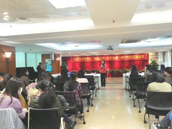 最后,张缦莉教授从心理专业的角度精彩剖析:整个团辅活动,在自我探索的过程中认识自己、了解自己和接纳自己,完成了自我提升;接着在团队作战中与其他成员交流沟通,学习社交技巧和发展人际关系的能力,学会信任他人,从而提升团队凝聚力,进而帮助成员培养责任感,培养敏锐洞察他人的感受和需要,使成员间彼此理解;优化人际关系,培养成员的归属感与被接纳感,成员才会更有安全感,更有信心面对工作中、生活中的挑战。爱岗、敬业、爱自己、爱家人就是提高幸福指数的钥匙。
