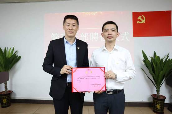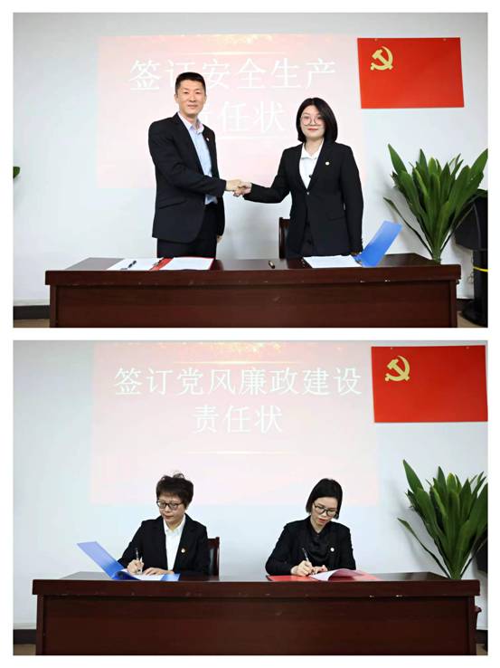 会议举行了管理干部聘任仪式,郑力强向管理干部代表颁发了聘书。举行了责任状签订仪式。郑力强、陈惠琼分别与部门负责人代表签订2022年安全生产责任状和2022年党风廉政建设责任状。