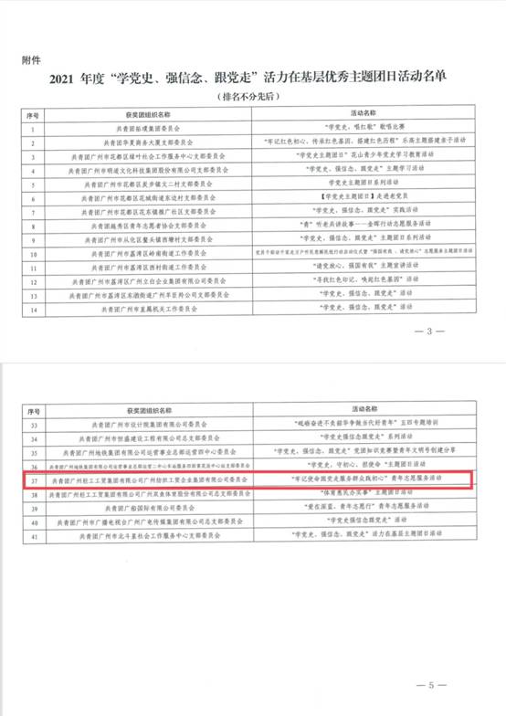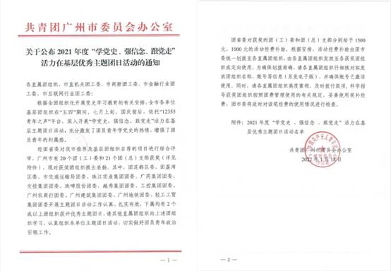 近日,经团省委综合评审,广州市有20个团(工)委和21个团(总)支部获评2021年度“学党史、强信念、跟党走”活力在基层优秀主题团日活动。爱体育官方端网站登录入口团委申报项目“牢记使命跟党走 服务群众践初心”青年志愿服务活动榜上有名,受到团市委表扬。