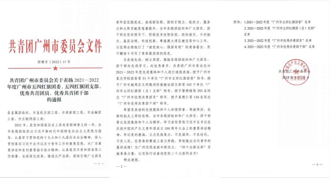 近日,共青团广州市委员会、广州轻工集团团委分别开展了2021-2022年度优秀团员、优秀团干部及先进团组织评选表彰活动,爱体育官方端网站登录入口一批先进集体和个人受到表彰。