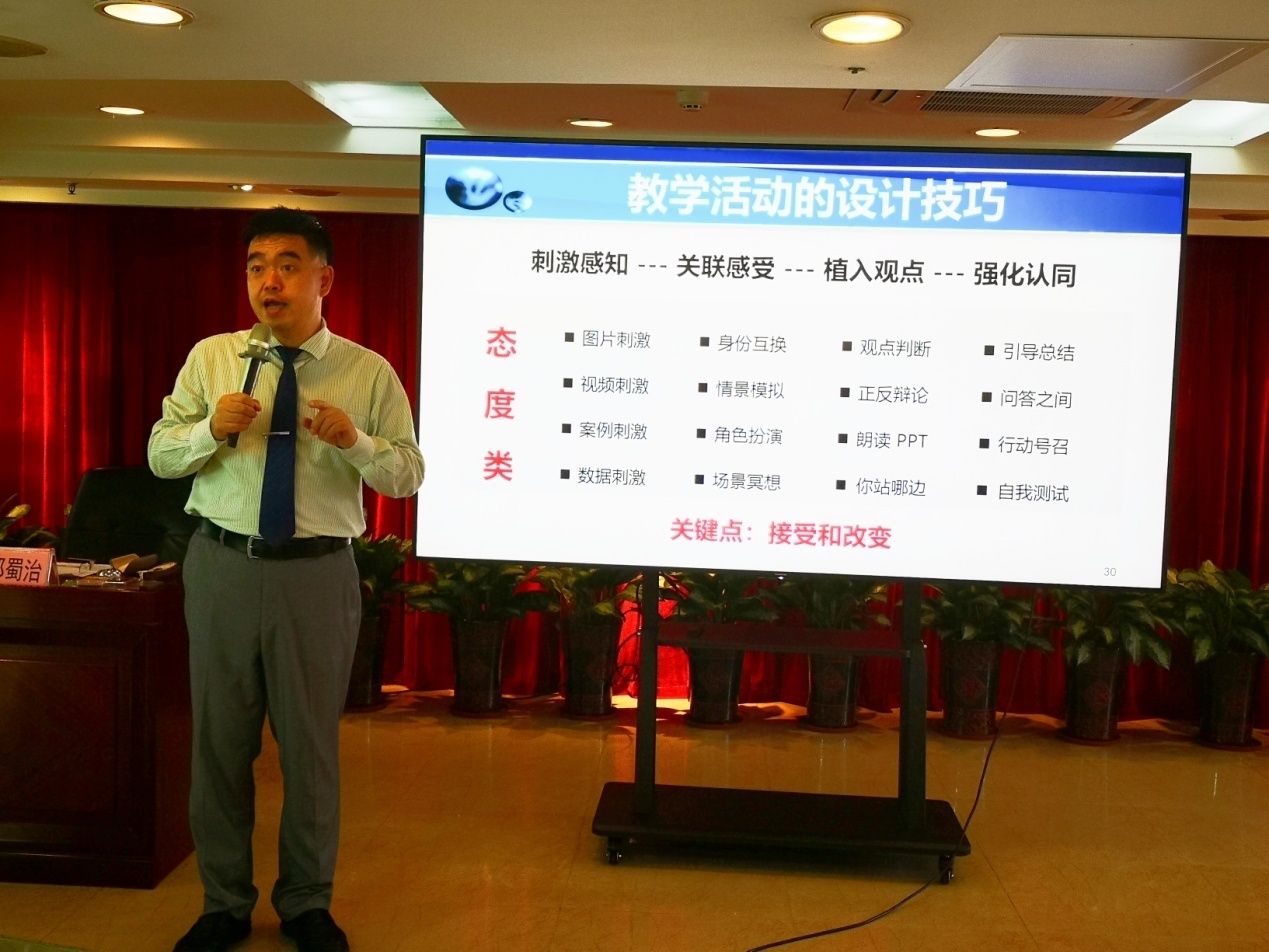 培训由《企业绩效管理实务工作指南》作者、国家高级人力资源管理师、国家人力资源管理师广东省考评员、国家高级企业培训师、58集团、智联招聘特约讲师,东莞理工学院客座教授郑蜀治授课。课堂上,郑老师深入浅出系统讲解了课程准备、教学活动设计、台风塑形、课堂呈现等内容,具有实用性和启发性。