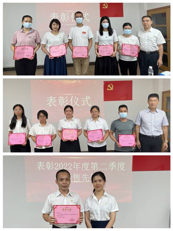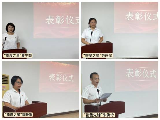 会议表彰了2022年第二季度“季度之星”及“销售先锋”先进个人。会上,四位先进个人代表分享获奖心得。