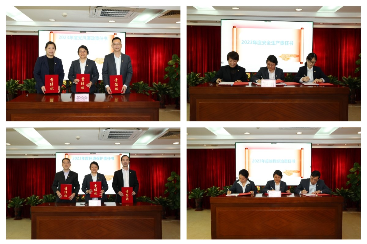 公司党委书记、董事长简玮仪与企业代表分别签订了2023年党风廉政建设、安全生产目标管理、环境保护目标管理、维护稳定及社会治安综合治理目标管理的责任书。
