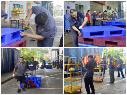 本次技能竞赛设置了制造板块岗位技能和安全劳动用品佩戴比拼两大项。在岗位技能比拼中,6人为一小组合力完成生产流程中地台板组装入库流程;参赛选手全神贯注、尽显其能,迅速无误切削披锋、精准对孔打入管塞、细致堆叠完成扣板、熟练拉动叉车入库,清晰的流程、娴熟的操作,展现出选手们精湛的技艺,同时赢得场下一阵阵响亮的掌声。而在安全劳动用品佩戴比拼中,大家争分夺秒,穿戴反光衣,佩戴活性炭口罩、防噪耳塞、工业护目镜、安全帽,每一步都有条不紊。
