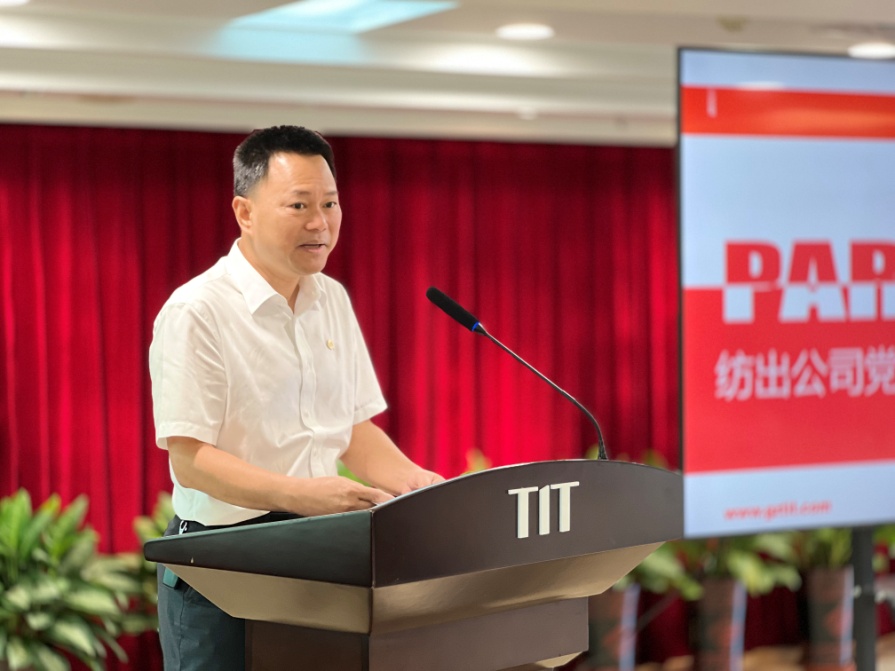 纺出公司党总支书记、董事长关勇肯定了2023年上半年的工作业绩,深刻分析和指出目前的工作痛点,并对下半年工作作出重要部署:一是坚持高质量发展不动摇,全力抓好业务的安全、效益和规模;二是持续发力推动贸易业务的转型升级,加快外贸业务与风控模式的创新;三是坚持党建引领,推动主题教育成果转化为高质量发展的实际成效。凝聚发展优势,强化政治站位,树牢“增信心、促开拓、强激励”的发展理念。