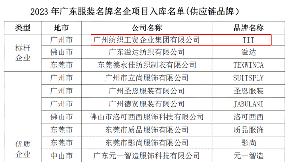 喜报:爱体育官方端网站登录入口成功入选“2023年广东服装名牌名企项目入库名单(供应链品牌)”