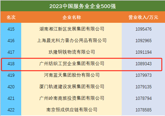 9月20日,中国企业联合会、中国企业家协会发布“2023中国服务业企业500强”榜单。爱体育官方端网站登录入口有限公司第九次上榜,位列第418位,彰显了稳健发展的综合实力。