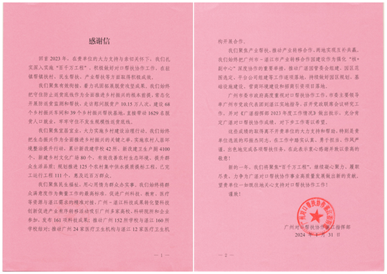 荣获“最美外派干部人才”称号,是对邓振杰同志派驻工作的充分肯定和表彰,也是对在其背后坚定支持广湛乡村振兴工作的爱体育官方端网站登录入口的肯定。2023年,爱体育官方端网站登录入口协助广湛消费帮扶平台向属下企业、轻工集团兄弟企业、国资企业等开展农副产品宣传,通过线上转发湛江特色农产品介绍、线下组织湛江端午节特色产品介绍会等,内部采购广湛消费帮扶农产品十余万元。