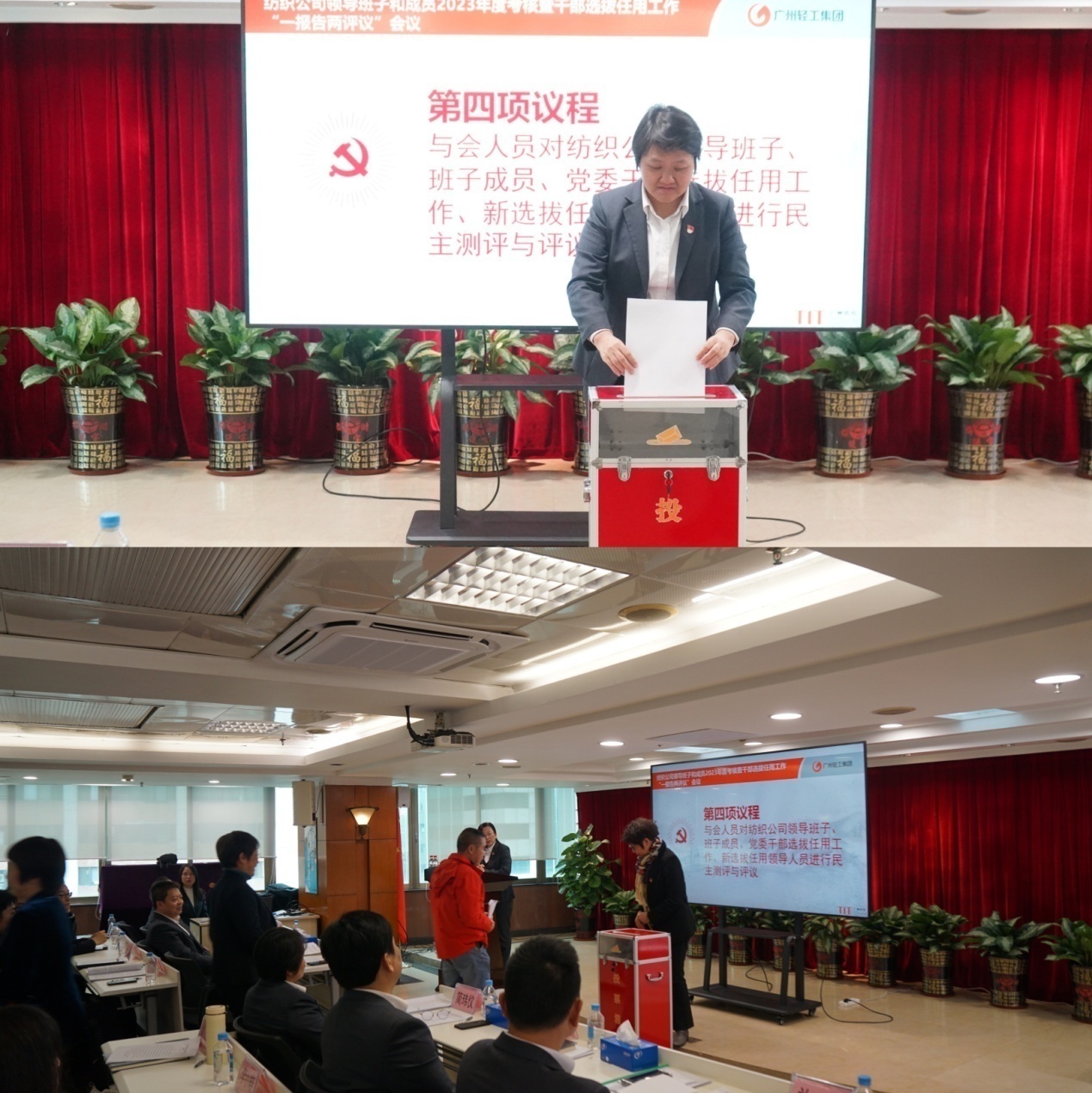 2月28日下午,爱体育官方端网站登录入口党委召开领导班子和成员2023年度述职暨干部选拔任用工作“一报告两评议”会议。会议由爱体育官方端网站登录入口党委副书记、工会主席丘海澜主持。爱体育官方端网站登录入口领导班子成员、本部中层管理干部、属下企业领导班子成员、企业“一代表两委员”以及党员干部群众代表参加了会议,广州轻工集团党委组织部派员出席了会议。