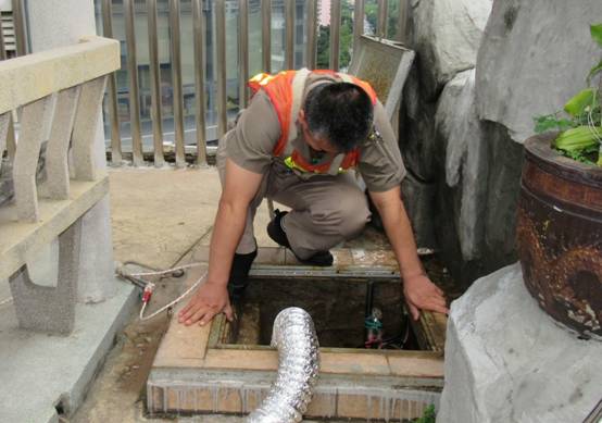 在食物中毒演练完成后,相关人员继续参加有限空间救援的演练。模拟在生活水池的清洗过程中由于池内氧气不足,导致作业人员窒息。指挥中心命令救援人员立即携带救援设备赶到现场,启动鼓风机对池内换气通风,救援人员穿上背带并固定安全绳后入池开展救援,成功转移池内人员到空气新鲜处交医护人员救治。本次演练让大家对有限空间安全作业的操作流程和救援措施熟记于心,筑牢了有限空间作业安全防线。