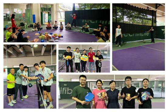 匹克球作为一种结合了网球、羽毛球和乒乓球元素的新兴运动,深深吸引了这群喜欢运动和探索的年轻人。经过教练动作示范和悉心指导,他们很快掌握了臂、腿、腰的协调发力技巧,从“零接触”迅速通关“巧发挥”。在 “一球定胜负”、“最佳搭档”和“限时垫球”等趣味匹克球友谊赛环节中,欢声笑语伴随着大汗淋漓,他们和球场上新认识的小伙伴共同拼搏、相互鼓励,享受团队合作的竞技乐趣。
