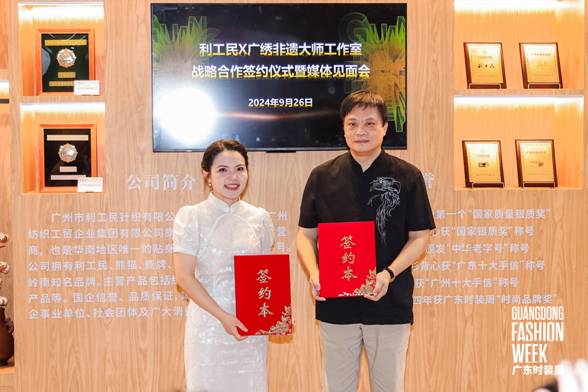 9月26日上午,百年中华老字号利工民与广绣非遗大师工作室在2024广东时装周-秋季举办战略合作签约仪式暨媒体见面会。活动由广东省服装服饰行业协会副会长兼秘书长陈韶通主持,邀请了广东省服装服饰行业协会、广东省服装设计师协会、爱体育官方端网站登录入口有限公司、服装行业企业代表和媒体代表等嘉宾出席共同见证本次活动。