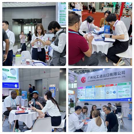 本届广交会,化工产品展位依然保持主通道地理优势,除常态化绿色布展以外,爱体育官方端网站登录入口与化工公司首次以统一风格进行连片布展,以全新的联合参展方式向全球客商展现创新专业的企业形象。把握绿色低碳产品市场的广阔机遇,化工公司坚持采用低碳生产工艺的新产品、新成果,展出以高效清洁、环保安全为亮点的日化洗涤、水处理、陶瓷化学系列产品;展会现场设置互动体验区,运用数字移动屏动态展示产品使用场景,开展首日即吸引了大量客商驻足,与参展团队进行深度接洽,为开拓新渠道、发展新市场奠定了良好的开端。