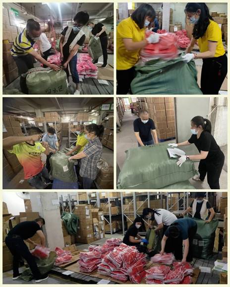 4月11日上午11时许,当爱体育官方端网站登录入口收到广州轻工集团要求定制5万件印有“我是共产党员”字样的志愿红马甲任务后,公司党委高度重视,第一时间指导利工民组建党员团员突击队和生产专班,制订详细工作计划及分工。一周内出这么大批的货是一个不小的挑战,而且马甲货源还分散在广州、佛山及浙江一些城市的仓库中。如何才能以最快速度调集货源、如何根据需求安排好每日出货量、如何精准配送到每条街道……这些现实的问题都摆在了工作专班面前。面对这些问题,利工民总经理郑力强迅速理清思路、靠前指挥,一边率领工作专班与上级部门、供应商保持密切联系,对接好各个工作环节;一边积极做好内部人员调配工作,确保高效完成出货任务。